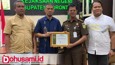 Pada pertemuan yang berlangsung hangat di kantor Kejaksaan Negeri (Kejari) Kabupaten Gorontalo, ini Kepala Kantor KPPBC TMP C Gorontalo, memberikan piagam penghargaan kepada Kajari Abvianto.