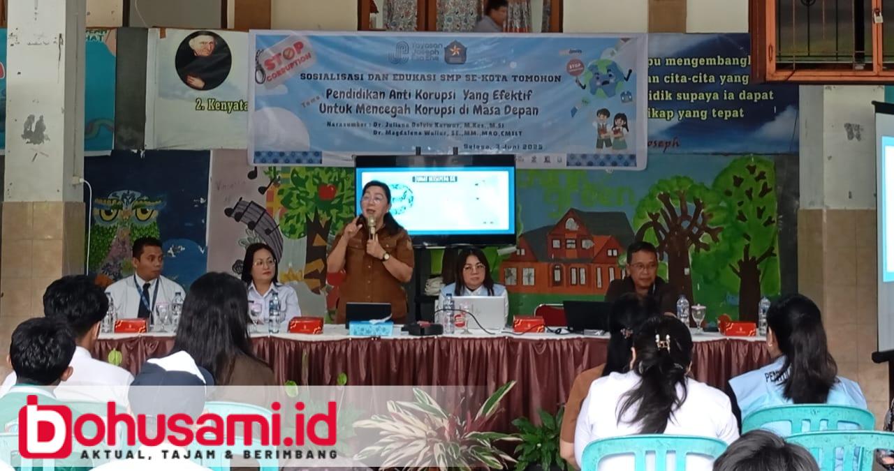 BOHUSAMI.ID, TOMOHON – Dinas Pendidikan dan Kebudayaan Kota Tomohon menggelar sosialisasi dan edukasi pendidikan anti korupsi bagi siswa SMP.