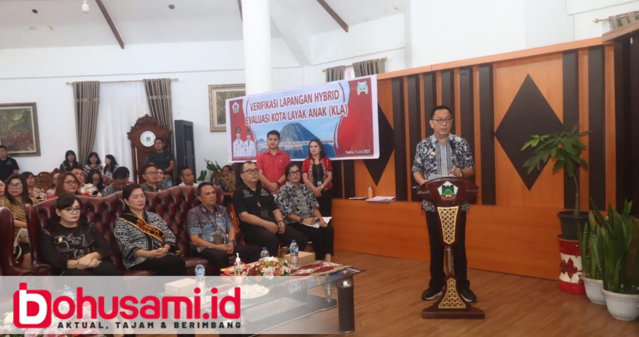 Verifikasi lapangan secara hybrid dalam rangka evaluasi Kota Tomohon sebagai KLA Tahun 2025, dilangsungkan di ruang Rapat Wali Kota Tomohon, Kamis (5/6/2025).