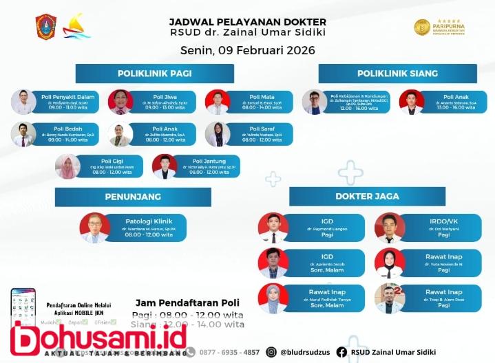 BOHUSAMI.ID, GORONTALO UTARA – Dalam upaya meningkatkan transparansi dan aksesibilitas layanan kesehatan bagi masyarakat, manajemen RSUD dr. Zainal Umar Sidiki (ZUS) resmi merilis jadwal praktik dokter spesialis untuk hari Senin, 9 Februari 2026.