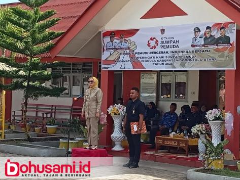 BOHUSAMI.ID, GORUT – Memperingati Hari Sumpah Pemuda 28 Oktober 2025, Wakil Bupati Gorontalo Utara, Nurjanah Hasan Yusuf, tampil sebagai inspektur upacara Di halaman SD 02 Tolinggula. Upacara ini dihadiri oleh Camat beserta jajaran, seluruh ASN (PNS dan P3K) se Kecamatan Tolinggula, Kepala Desa Se Kecamatan Tolinggula beserta perangkatnya, dan pelajar.