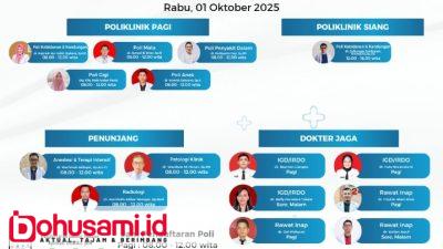 BOHUSAMI.ID, GORUT – Rumah Sakit Umum Daerah (RSUD) dr. Zainal Umar Sidiki kembali merilis jadwal pelayanan dokter untuk Rabu, 1 Oktober 2025. Informasi ini disampaikan pihak rumah sakit sebagai bentuk transparansi dan kemudahan akses bagi masyarakat yang ingin mendapatkan layanan kesehatan.