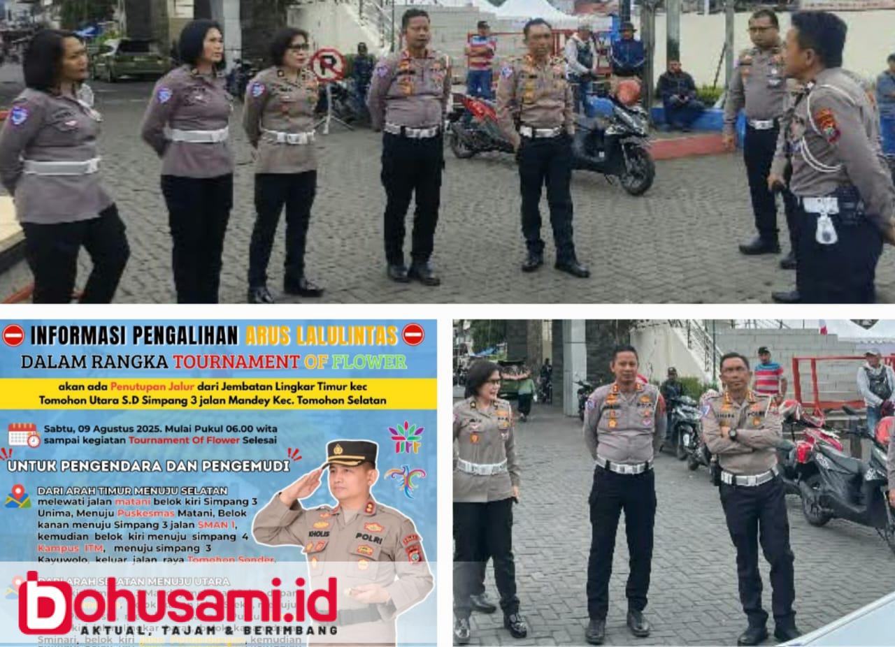 BOHUSAMI.ID, TOMOHON – Polres Tomohon menutup jalur utama ruas Manado-Tomohon mengantisipasi Tournament of Flower (TOF) yang mulai bergulir Sabtu (9/8/2025).