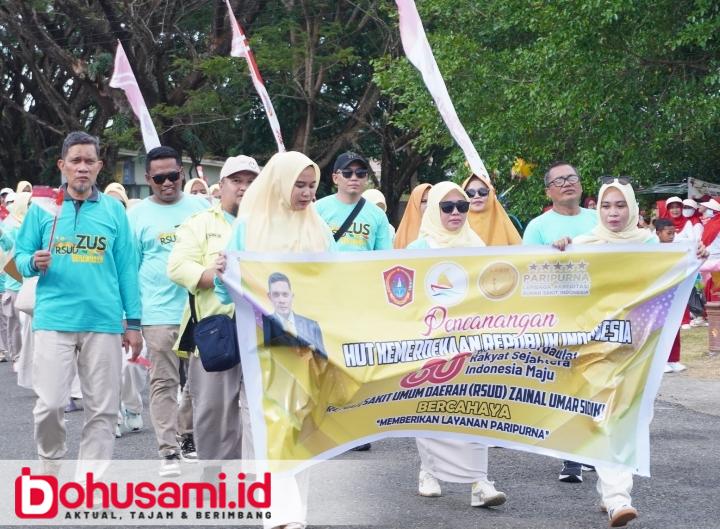 BOHUSAMI.ID, GORUT – RSUD dr. Zainal Umar Sidiki (ZUS) Gorontalo Utara ikut serta memeriahkan pencanangan Perayaan Hari Ulang Tahun ke-80 Republik Indonesia di Gorontalo Utara tahun 2025 yang bertempat di halaman Kantor Bupati Gorontalo Utara, selasa (5/8/2025).