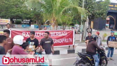 Ketua DPC PJS Kabupaten Gorontalo, Ghaffar Becce’lebu mengatakan, kegiatan ini digelar selain memanfaatkan momentum bulan Ramadan untuk mencari ladang pahala, juga sebagai aksi simpatik dukungan terhadap Revisi Undang-Undang (RUU) Tentara Negeri Indonesia (TNI).