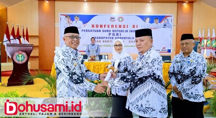 BOHUSAMI.ID, LIMBOTO – Bupati Gorontalo H. Sofyan Puhi resmi membuka Konferensi XI PGRI Kabupaten Gorontalo Masa Bakti 2025-2030 yang berlangsung dengan suasana penuh semangat dan kebersamaan di Aula Dinas Pendidikan dan Kebudayaan Kabupaten Gorontalo, Rabu (11/06/2025).