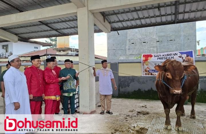 BOHUSAMI.ID, LIMBOTO – Bupati Gorontalo, H. Sofyan Puhi, ST secara simbolis menyerahkan sapi Qurban Bantuan Presiden (Banpres) kepada Takmirul Masjid Agung Baiturahman Limboto.