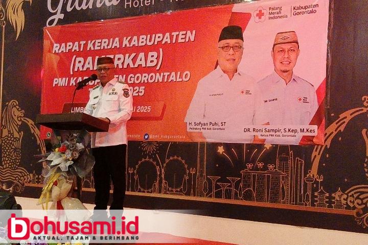 BOHUSAMI.ID, LIMBOTO – Palang Merah Indonesia (PMI) Kabupaten Gorontalo menggelar Rapat Kerja Kabupaten (Rakerkap) Tahun 2025 yang dibuka resmi Bupati Gorontalo, H. Sofyan Puhi di Bukit Proja Desa Pone Kecamatan Limboto Barat Rabu, (23/07/2025).