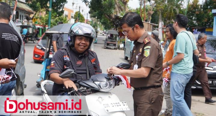 BOHUSAMI.ID, LIMBOTO – Jelang perayaan Hari Ulang Tahun (HUT) Kemerdekaan Republik Indonesia (RI) yang ke-80, Kepala Kejaksaan Negeri (Kajari) Kabupaten Gorontalo Abvianto Syaifullah, membagikan sejumlah bendera merah putih di kawasan bundaran adipura Limboto, guna membangkitkan jiwa nasionalisme kepada masyarakat. Kamis, (14/08/2025).