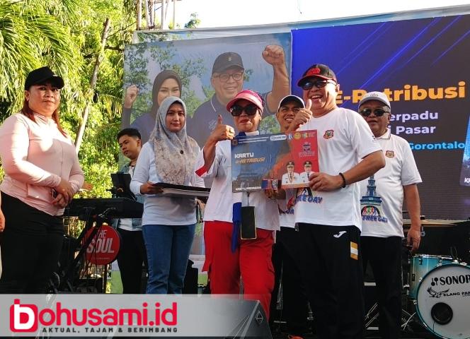BOHUSAMI.ID, LIMBOTO – Pemerintah Kabupaten Gorontalo luncurkan Inovasi Kartu Sistem Terpadu Retribusi Pasar (ST12-PAS) E-Retribusi dilakukan oleh Bupati Gorontalo H. Sofyan Puhi Wakil Bupati Gorontalo, Tonny S. Junus, Minggu (29/6/2025) di Bawah Menara Pakaya Limboto.
