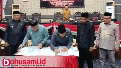 BOHUSAMI.ID, LIMBOTO – Dalam rangka penyesuaian Rencana Pembangunan Jangka Menengah Daerah (RPJMD), Pemerintah Kabupaten (Pemkab) Gorontalo bersama Dewan Perwakilan Rakyat Daerah (DPRD), melakukan rapat penandatanganan nota kesepakatan atas perubahan Kebijakan Umum Anggaran (KUA) dan Prioritas Plafon Anggaran Sementara (PPAS) Tahun Anggaran 2025.