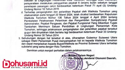 Keyakinan itu dikemukakan pengamat Boaz Wilar dengan merujuk butir C dan D surat Kemendagri Nomor 100.2.2.6/6846/OTDA Tentang Penjelasan Terhadap Pelaksanaan Pengangkatan dan Pelantikan Pejabat di Lingkungan Pemerintah Daerah Kota Tomohon, tertanggal 5 September 2024 yang ditujukan kepada Gubernur Sulut dan ditembuskan ke Mendagri dan Walikota Tomohon.