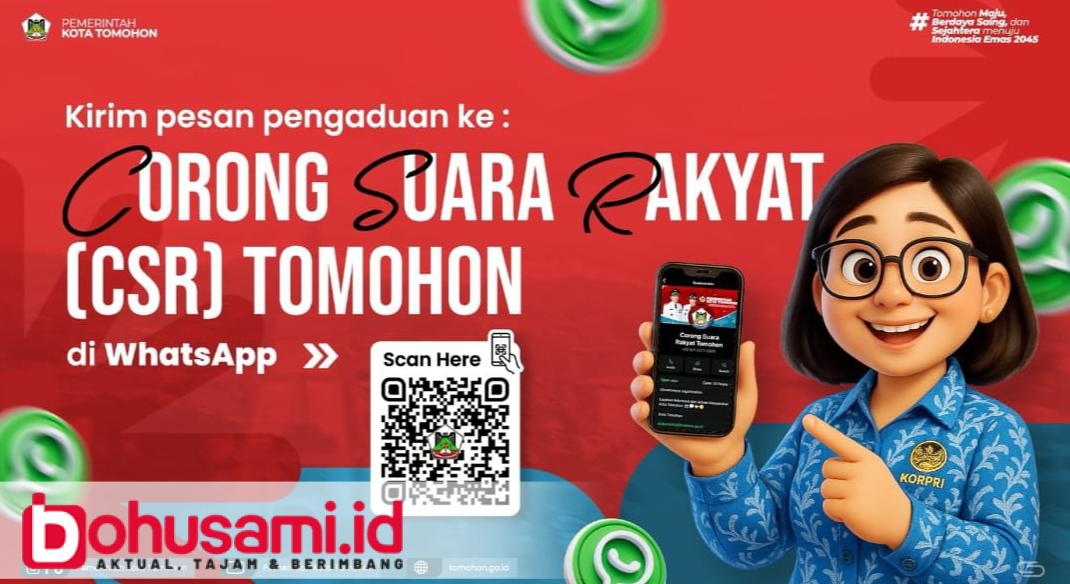 BOHUSAMI.ID, TOMOHON – Pemerintah Kota (Pemkot) Tomohon meluncurkan hotline layanan publik “Corong Suara Rakyat” (CSR) sebagai wujud komitmen memberikan wadah penyampaian keluhan, saran maupun laporan terkait layanan publik di Tomohon.
