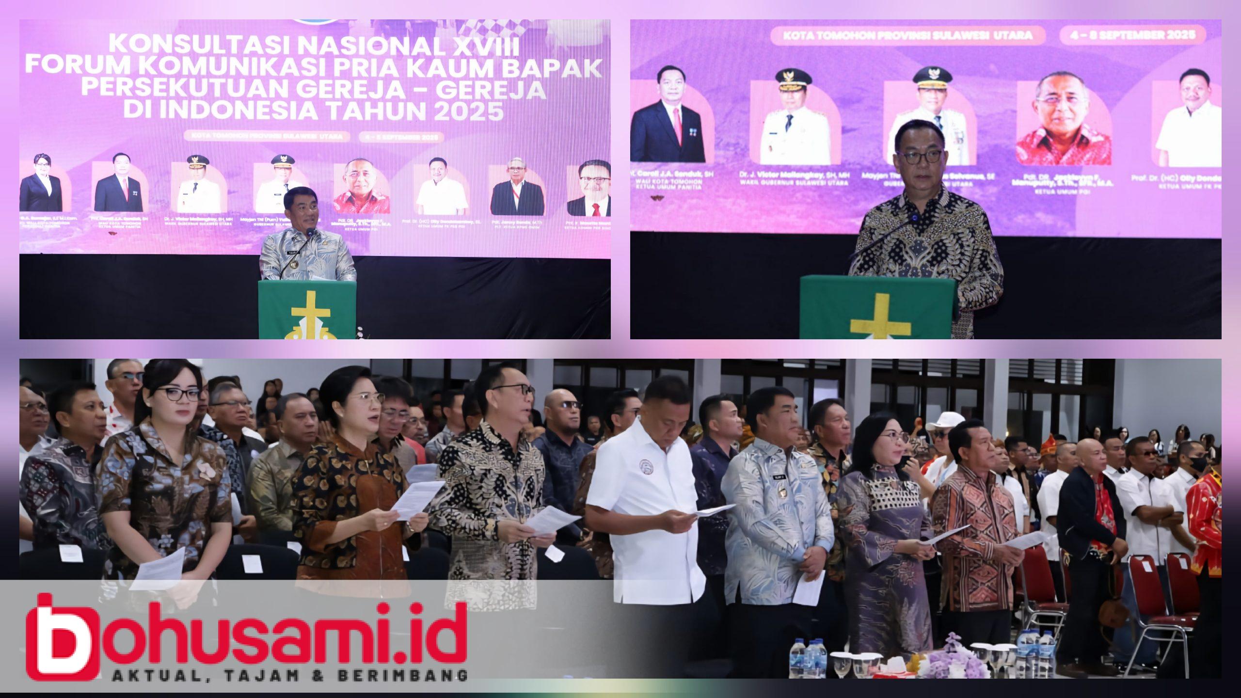 BOHUSAMI.ID, TOMOHON – Konsultasi Nasional (Konas) XVIII Forum Komunikasi Pria Kaum Bapak (FK-PKB) Persekutuan Gereja-Gereja di Indonesia (PGI) Tahun 2025 yang berlangsung di GMIM Inspirasi Tomohon, Kamis (4/9/2025).