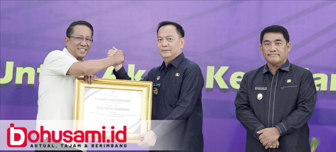 BOHUSAMI.ID, TOMOHON – Wali Kota Tomohon menerima Piagam Penghargaan dari Menteri Hukum Republik Indonesia atas dukungan dalam pembentukan Pos Bantuan Hukum (Posbankum) Desa/Kelurahan.