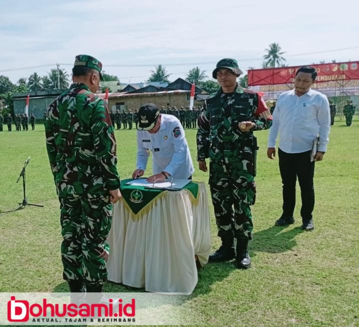 Pada kesempatan Bupati Gorontalo Sofyan Puhi, menjadi Inspektur upacara sekaligus membuka kegiatan Tentara Manunggal Membangun Desa (TMMD), di lapangan Kecamatan Telaga Biru Kabupaten Gorontalo. Rabu (08/10/2025).