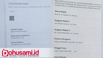 ” Tersangka disangkakan melanggar pasal 45 ayat 1 undang-undang 23 tahun 2004 tentang kekerasan dalam rumah tangga yang sifatnya psikis dan fisik,” jelasnya, Jumat (14/11/2025) sore.