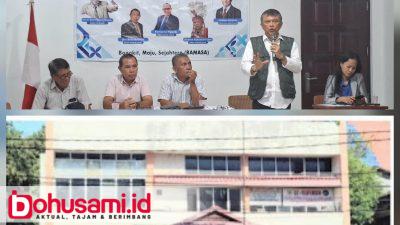 Dirut Puskud Sulut, Stephen Kabasaran Liow (berdiri) pada Rapat Evaluasi dan Program bersama jajaran Pengurus Puskud (atas). Gambar bawah eks…