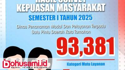 BOHUSAMI.ID, TOMOHON – Hasil survey tentang tingkat kepuasan masyarakat terhadap pelayanan menunjukkan Pemerintah Kota (Pemkot) Tomohon pada semester pertama 2025…
